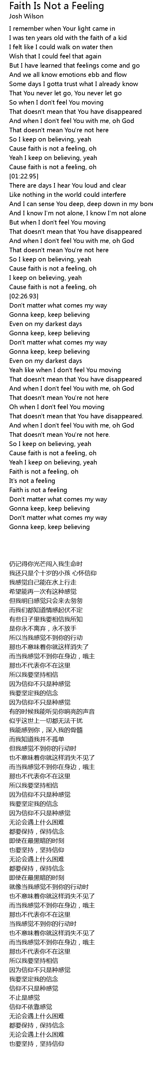 Cause faith is not a feeling, oh |