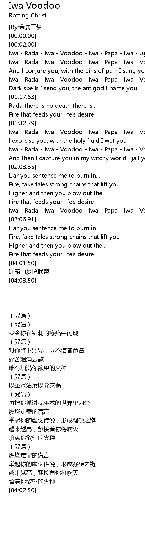 | [02:51.43] | Iwa Rada Iwa Voodoo Iwa Papa Iwa Voodoo |