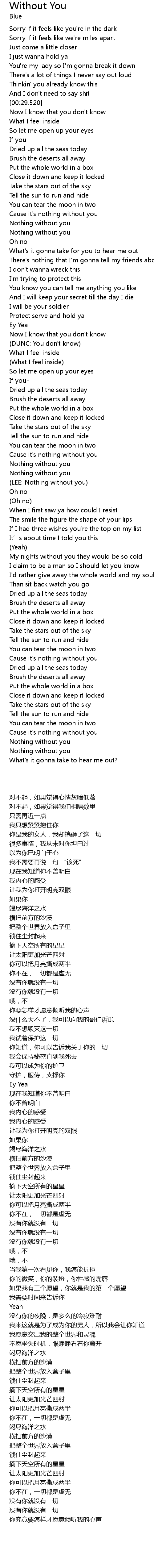 | 歌曲 | Without You |