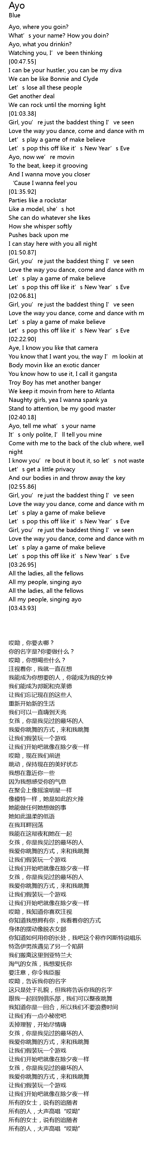 | 歌曲 | Ayo |