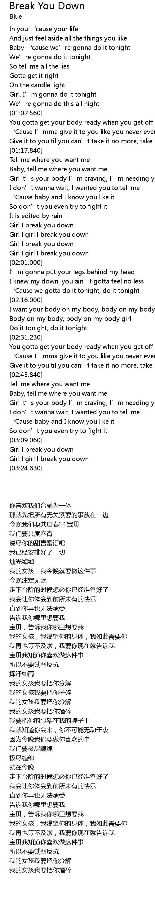 | [02:53.300] | 我的女孩,我渴望你的身体,我如此需要你 |