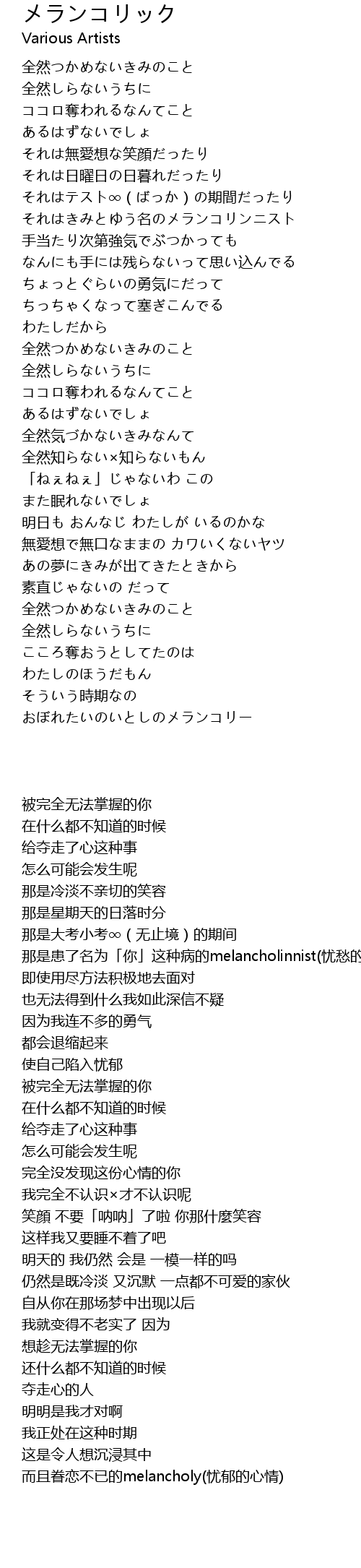 | 歌曲 | メランコリック |