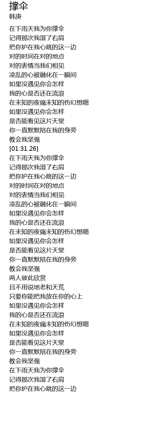 | [00:20.19] | 在下雨天我为你撑伞 |