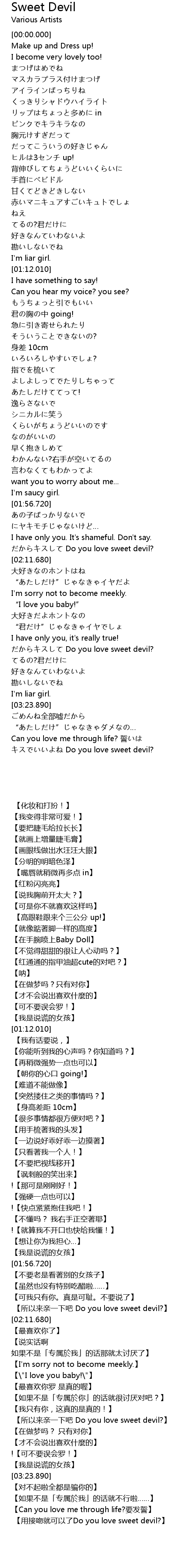 | [03:06.310] | Do you love sweet devil? |