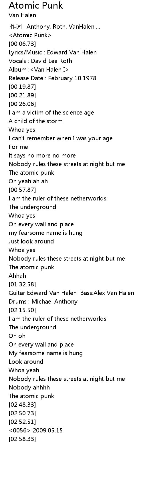 | [01:34.04] | Guitar:Edward Van Halen Bass:Alex Van Halen |