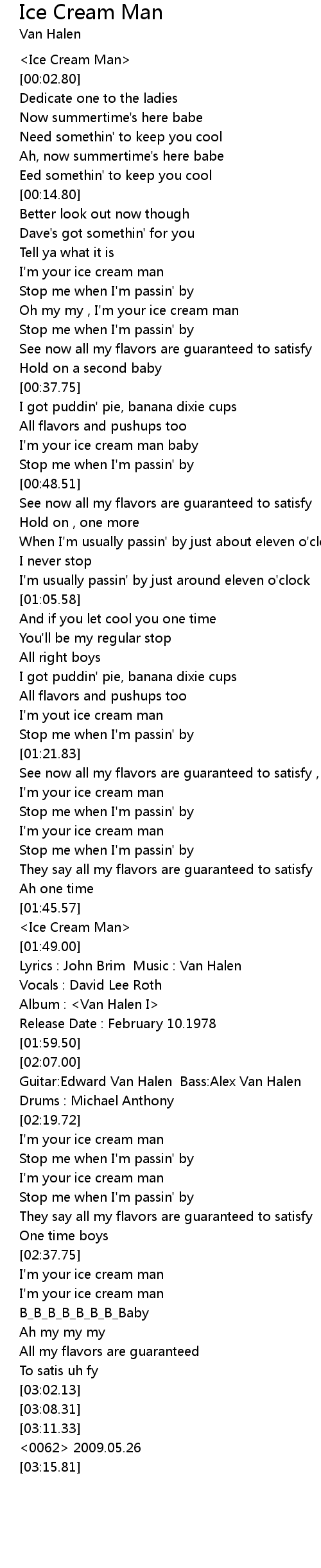 Lyrics : John Brim Music : Van Halen |