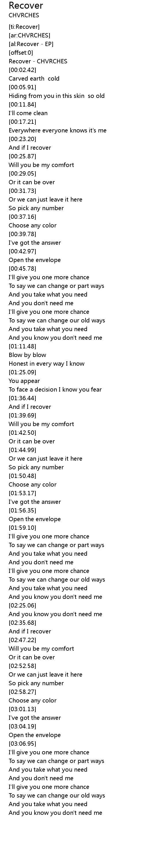 [00:01.17] Recover - CHVRCHES