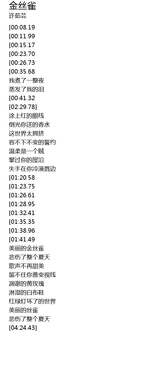 | [03:02.04] | 美丽的金丝雀 |
