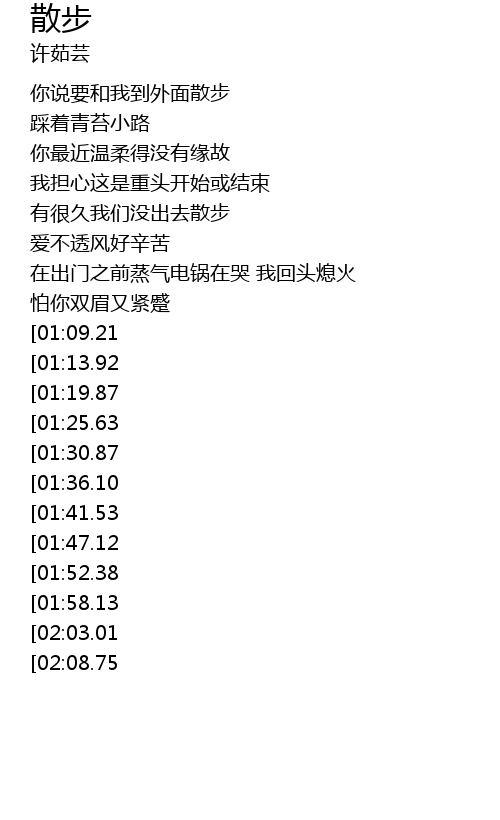 | [03:23.96][01:52.38] | 能不能 就这样一直散步 |