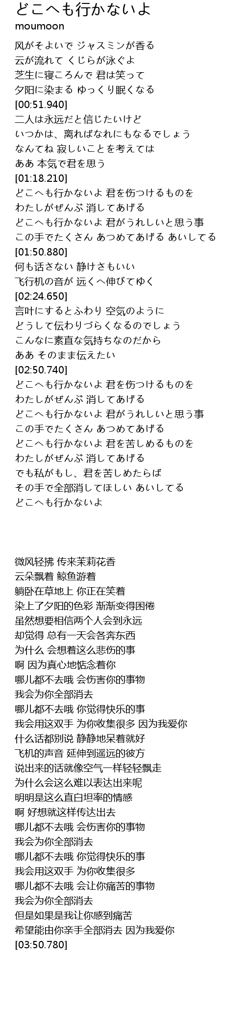 | [02:53.570] | 哪儿都不去哦 会伤害你的事物 |