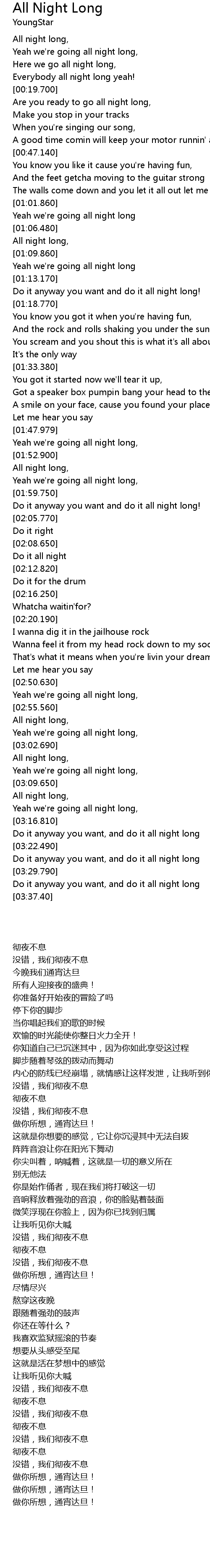 | [00:14.580] | Everybody all night long yeah! |