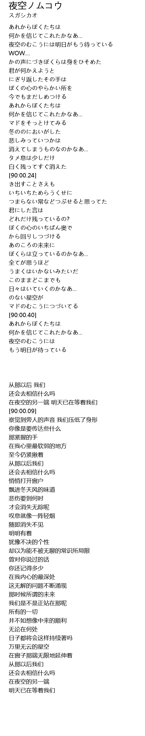 | [90:00.43] | 夜空のむこうには |