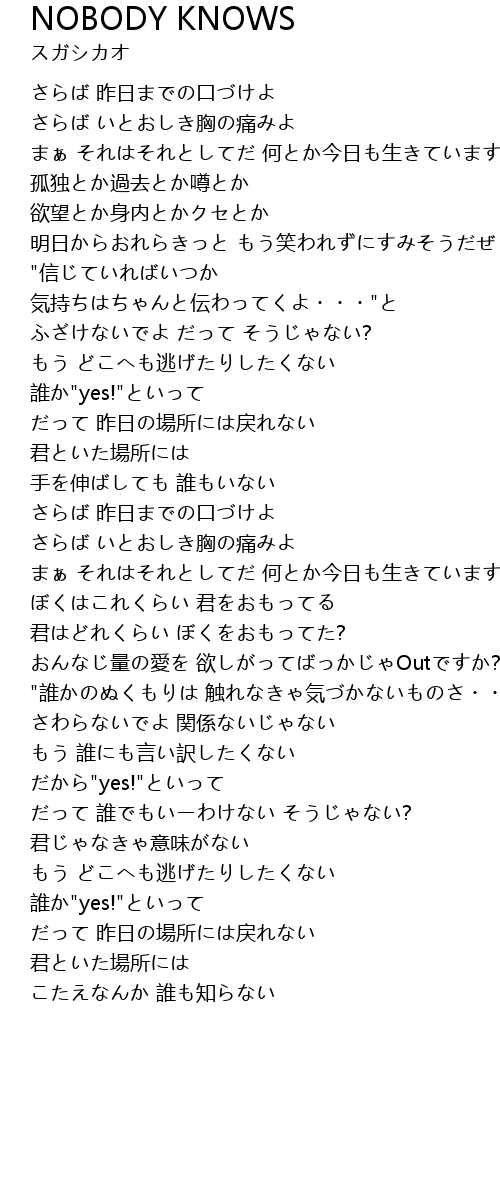 | 歌曲 | NOBODY KNOWS |