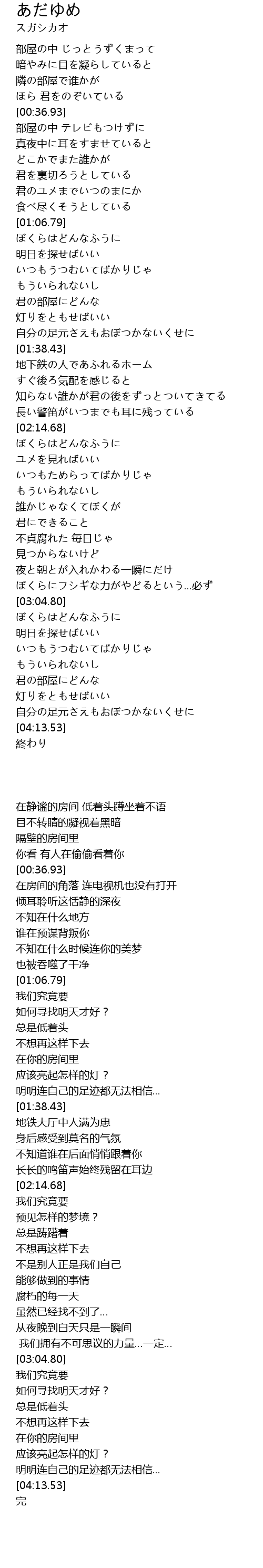 | 歌曲 | あだゆめ |