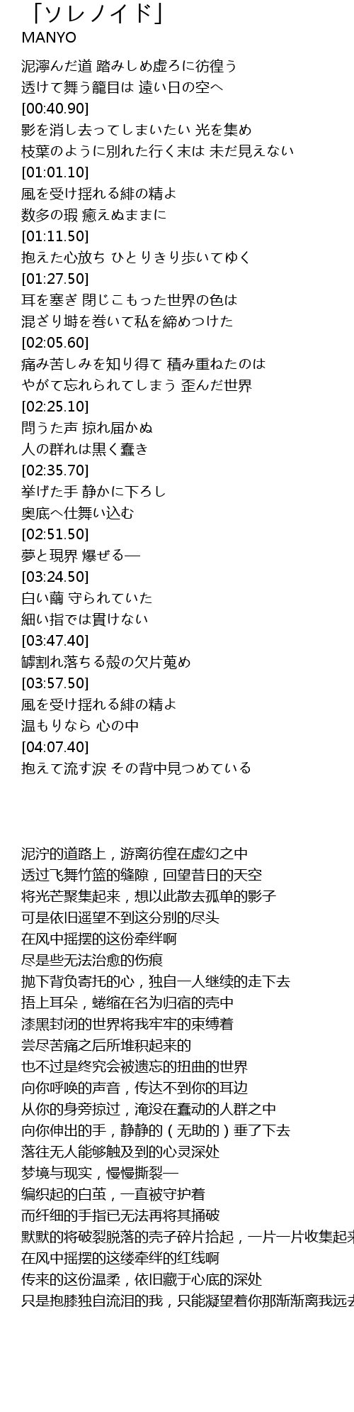 | [00:21.20] | 泥濘んだ道 踏みしめ虚ろに彷徨う |