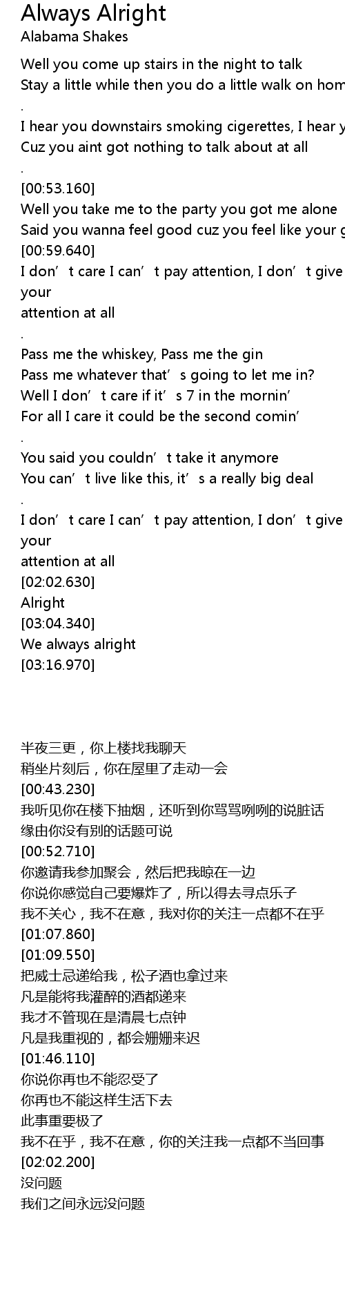 | [00:37.360] | Well you come up stairs in the night to talk |
