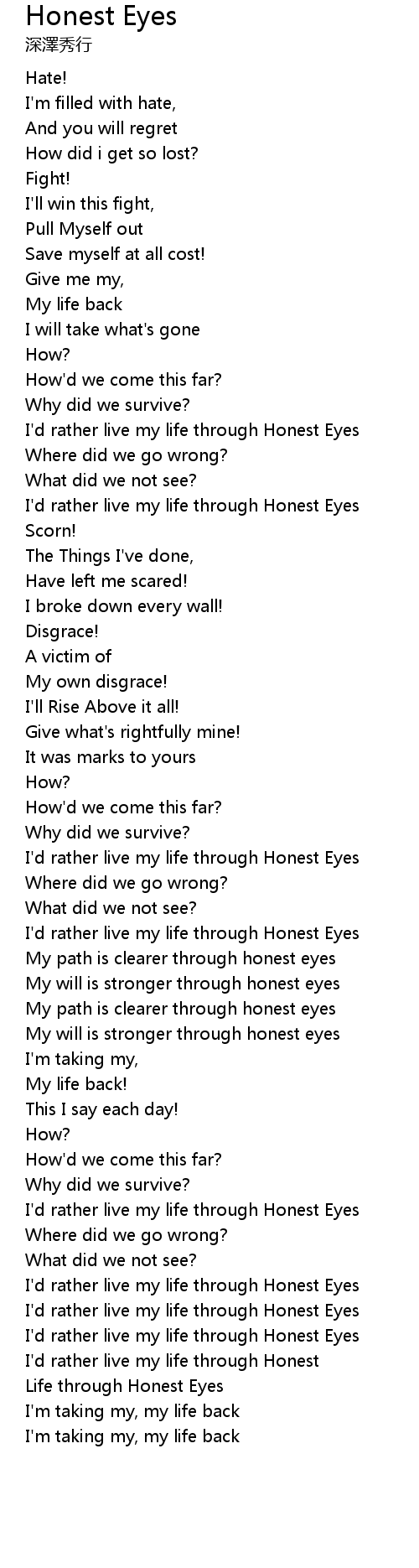 I'd rather live my life through Honest Eyes |