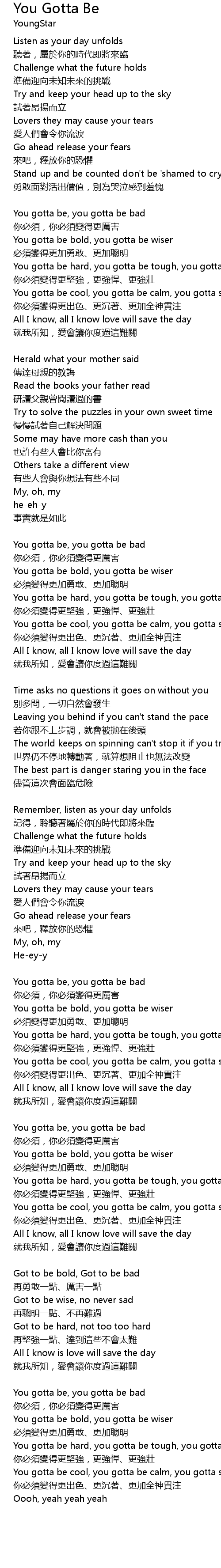 | 歌曲 | You Gotta Be |