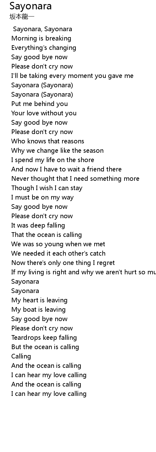 Sayonara, Sayonara |