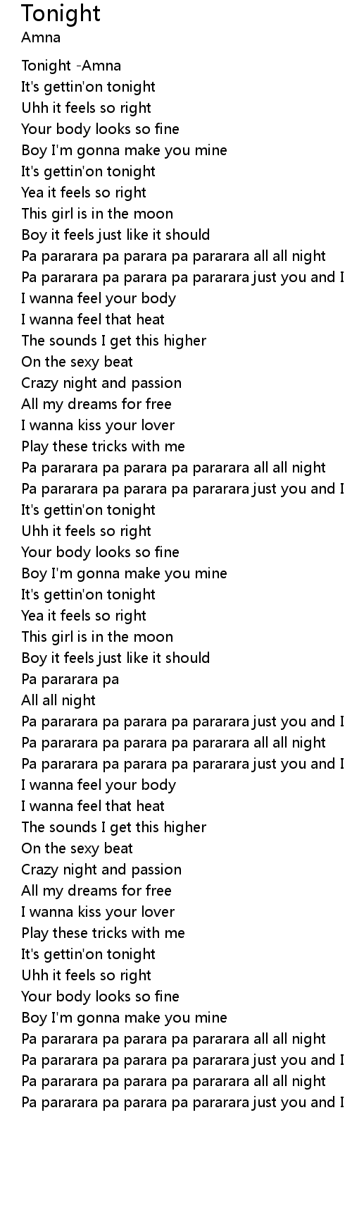 | [00:08.949] | It's gettin'on tonight |
