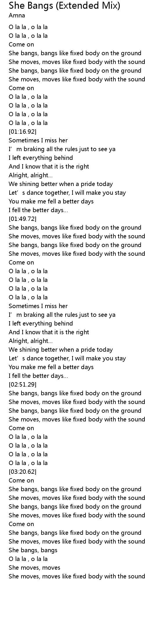 She Bangs (Extended Mix) 歌词