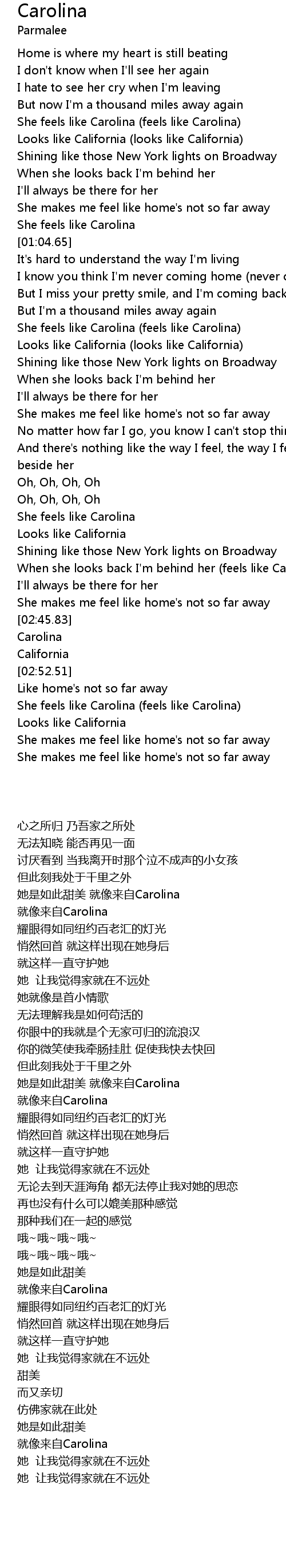 [02:57.64] She feels like Carolina (feels like Carolina)