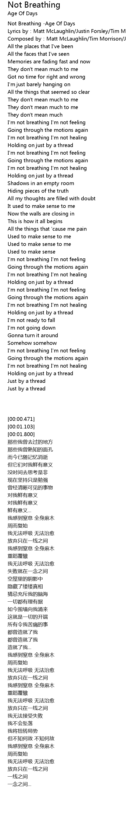 | [00:00.471] | Not Breathing -Age Of Days |