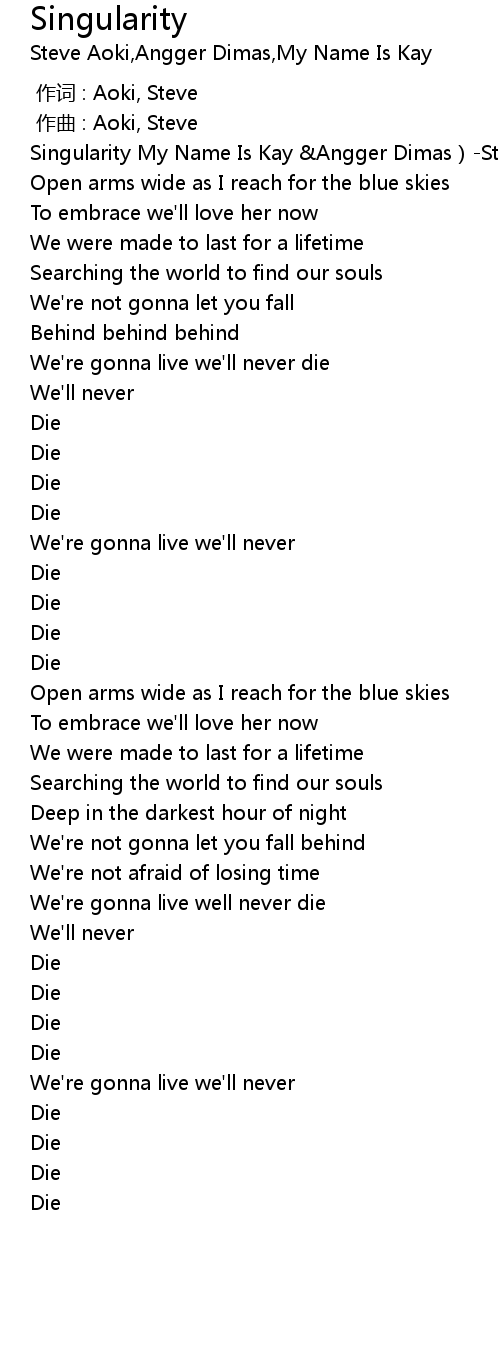 | [00:01.41] | Singularity My Name Is Kay Angger Dimas Steve Aoki |
