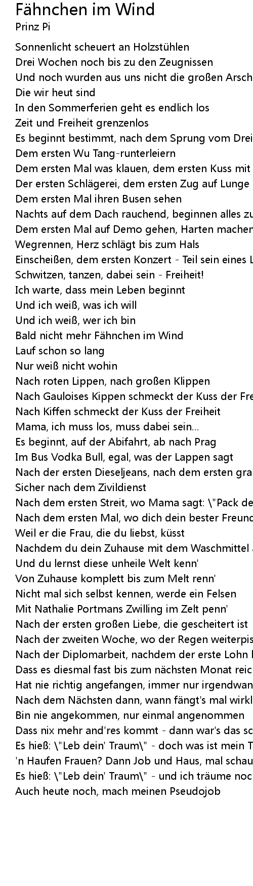 | Dem ersten Mal was klauen, dem ersten Kuss mit Zunge | |