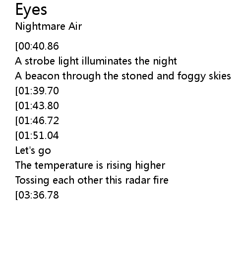 | [00:35.72][00:40.86][00:49.86][01:08.25][01:30.29][01:38.31][02:12.35][03:38.42] |