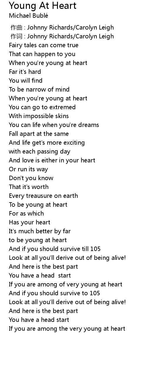 | [00:01.00] | 作词 : Johnny Richards/Carolyn Leigh |