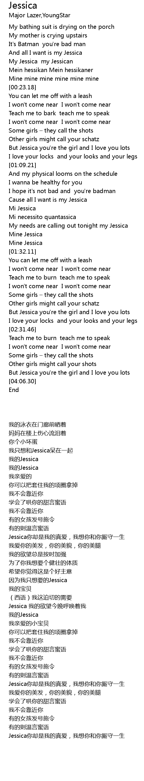 | [00:13.83] | My Jessica my Jessican |