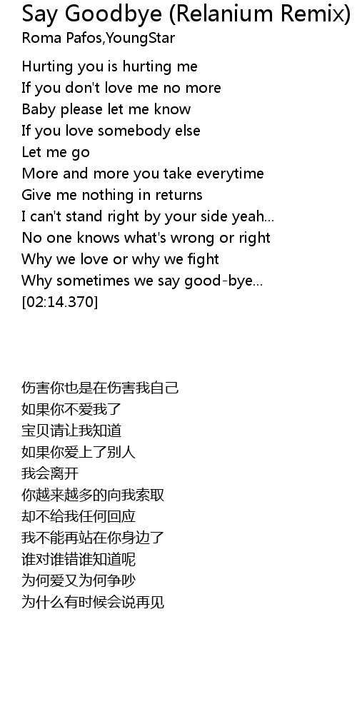 | [02:07.890] | Why sometimes we say good-bye... |