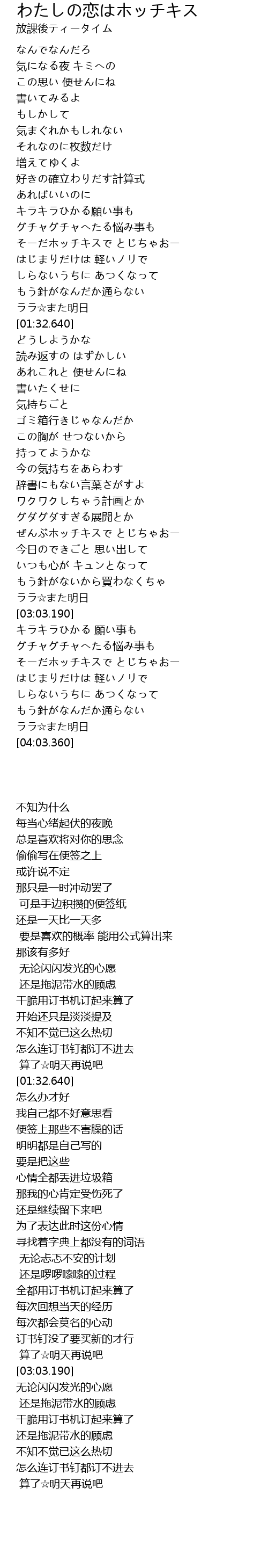 | 歌曲 | わたしの恋はホッチキス |
