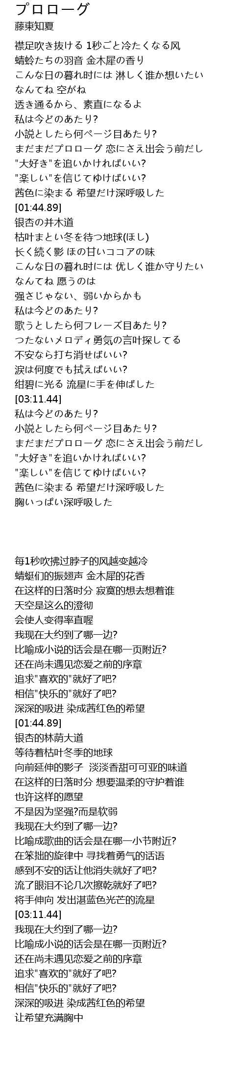 | [03:39.76] | まだまだプロローグ 恋にさえ出会う前だし |