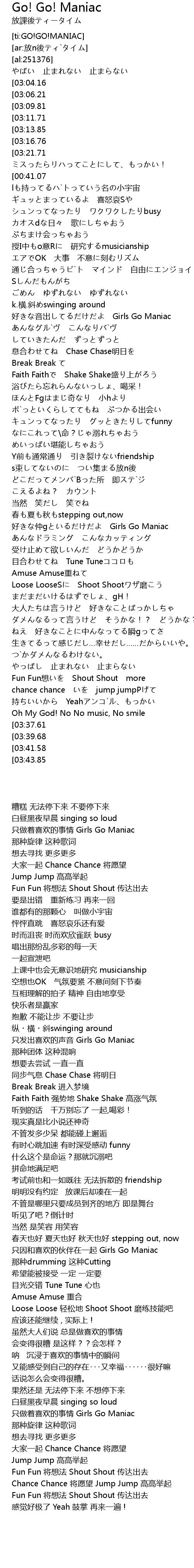 | [00:12.39][03:06.21] | hǎo Girls Go Maniac |