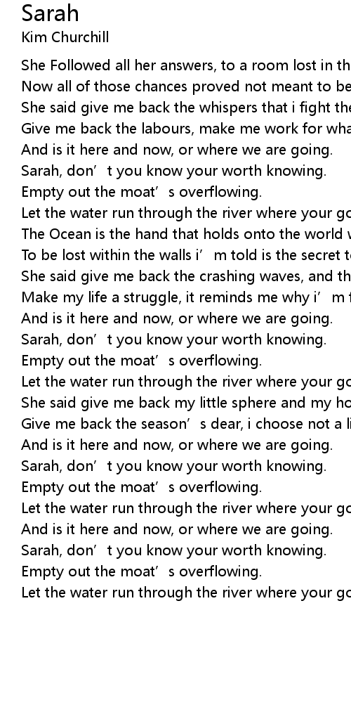 | Sarah, don' t you know your worth knowing. | |