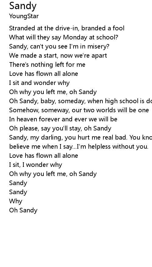 Sandy, my darling, you hurt me real bad. You know it's true. But baby, you gotta believe me when I say...I'm helpless without you.