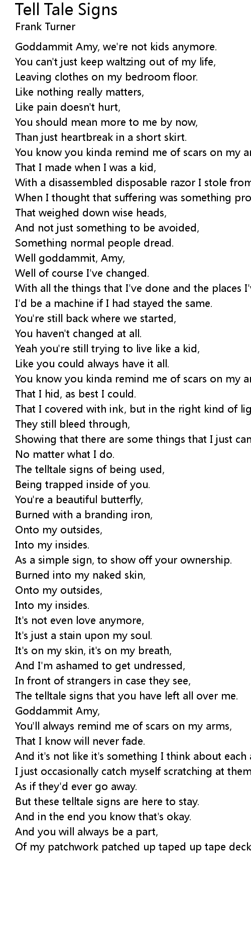 You know you kinda remind me of scars on my arms, |