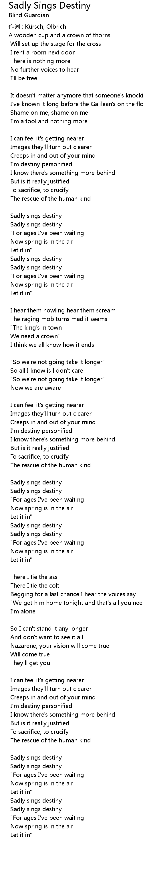 | Sadly sings destiny | |