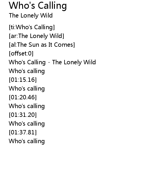 | [00:00.65] | Who's Calling - The Lonely Wild |