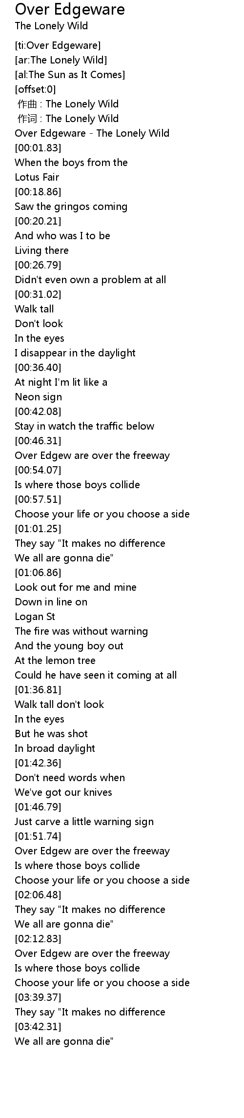 | [00:00.52] | Over Edgeware - The Lonely Wild |