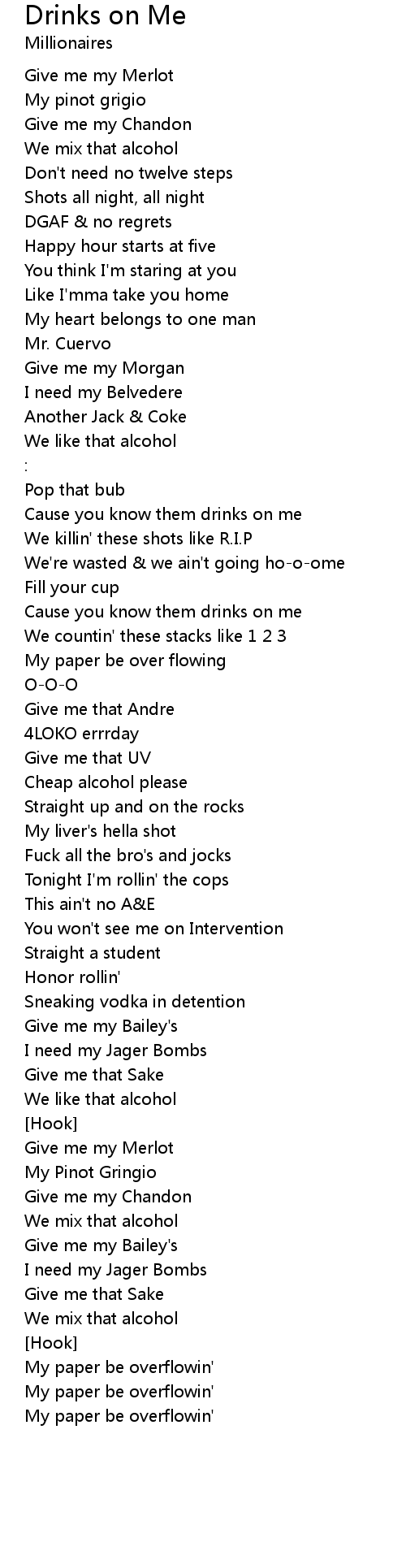 Cause you know them drinks on me |