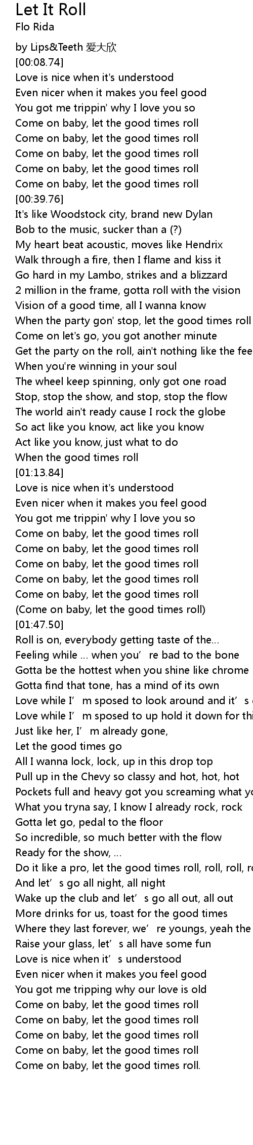| [01:44.04] | Come on baby, let the good times roll |