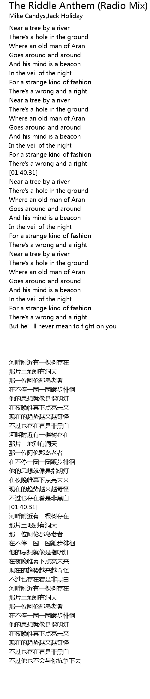 | 歌曲 | The Riddle Anthem (Radio Mix) |