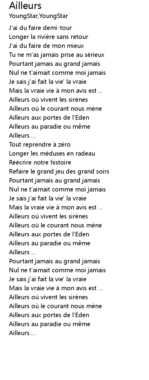 | [03:34.72] | Ailleurs où vivent les sirènes |