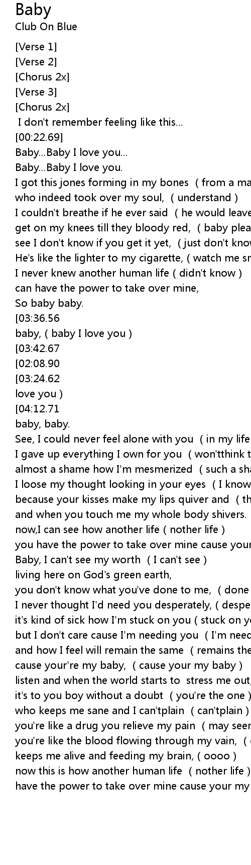 | [03:48.29][03:24.62][02:11.87][01:24.13] | baby, baby, baby, baby, baby, baby I love you |
