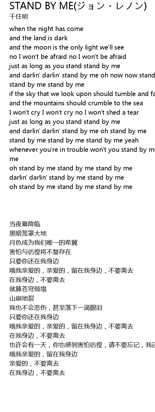 whenever you're in trouble won't you stand by me oh now now stand by me |
