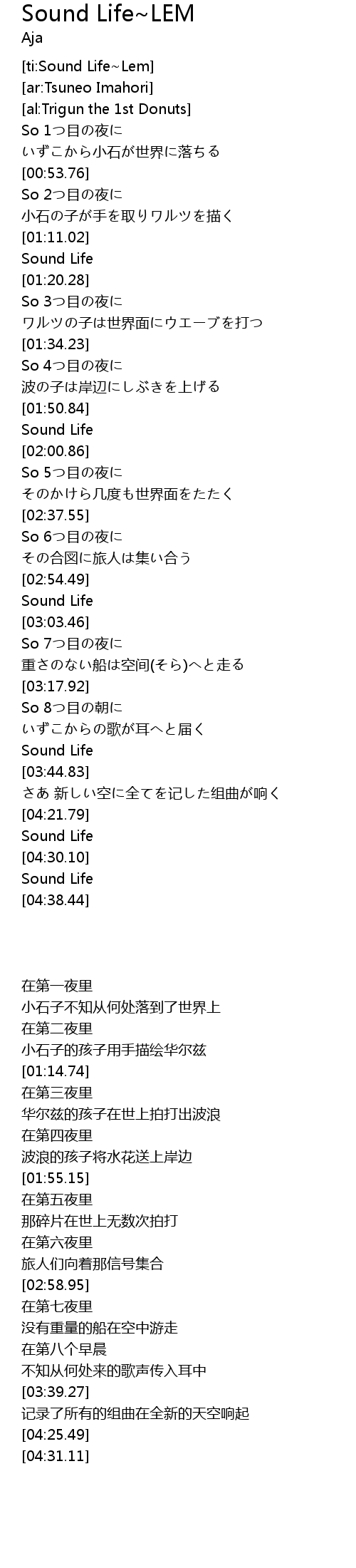 | [00:45.80] | いずこから小石が世界に落ちる |