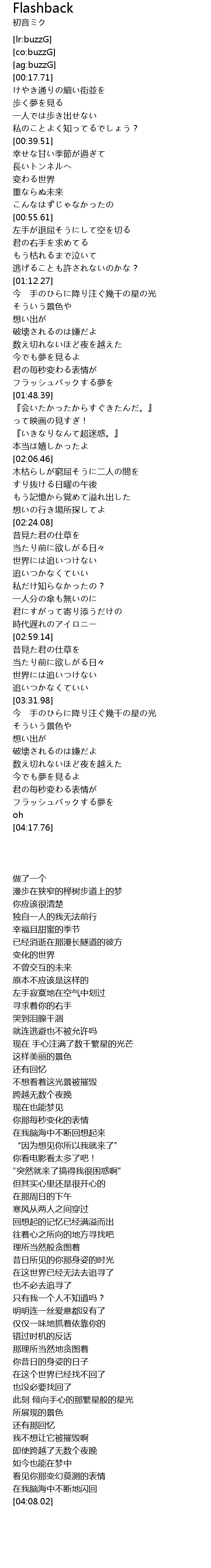 | [04:03.00] | フラッシュバックする夢を |